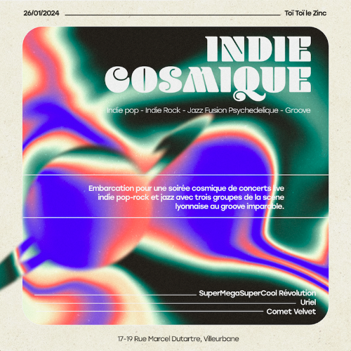 Embarcation pour une soirée cosmique de concerts live indie pop-rock aux teintes funk et jazz avec trois groupes de la scène lyonnaise au groove imparable.